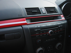<シート貼込み> はずしたパネルを部屋に持込みシートを貼っていきます。 まぁ、赤が妥当かなということで赤をセレクト。 赤だけだとなんか味気ないので白のラインをいれてみることに・・・ 水曜どうでしょうのDVDを見ながらかれこれ30分。 シートの貼込みが完了。 クルマへ行きパネルを取り付けて施工完了となりました。 |